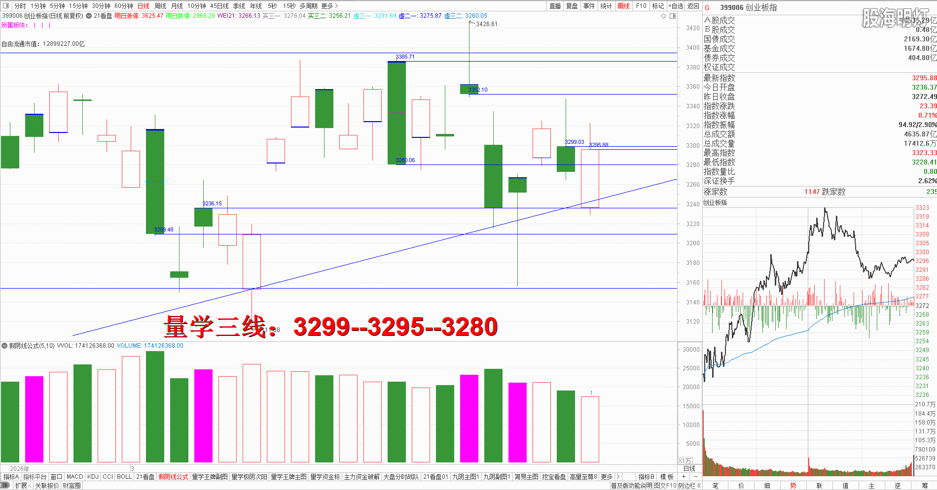 友情提示:股市有风险,入市需谨慎!本文是纯专业量学知识点分享,所有术语均出自量学五本专业教材,本文分析仅代表作者个人观点,我们采用清华大学出版社、经济日报出版社和四川人民出版社《量学经典教材》,旨在记录和验证量学盘前预报,总结提升量学经验,积累历史档案,不为操盘指导,据此实盘者盈亏自负,均与作者无关!好的谷票管一阵子,好的技术管一辈子,学习改变人生,学习改变未来!我们不但教给大家量学技术,更为大家提供适合自己的量学方案,让我们快来一起学习吧! 一、 昨日研判:将继续考验3881点缺口支撑,结合开盘定势,强势应该竞价高开且量波正三维快速返回3904点高量阴实顶上方并站稳,达标方可模拟接回今日高抛部分;反之不能高开,且有效跌破3881缺口,将继续下探3849点阳实底,此线不破且大幅缩量则下周一有望出现次阳反弹,一旦有效跌破3849点,就需谨防重新进入下降趋势,后势一旦继续跌破3813点高量阴实底那么下降趋势就得到确认。所以今天已经安班标准模拟训练防控者,明日再次模拟学习量学不见有效次阳不动心知识点。量学【上日三线】:3904--3889--3881(3849)。早盘竞价大幅低开只3852点距离预定第二下线3849点差3个点属于精准范围之内,开盘后在风向标券券恐龙急拉的带动下大盘跟随恐龙波急速拉升,其后回踩人线不破继续向上震荡反弹,但是整体量波并不健康,所以持有模拟案例稳健者应该继续逢高模拟训练量学五出替领防控,先享受轻松过周末的乐趣再观察后势,但是下午开盘在风向标券券再次突然再次恐龙波猛烈拉升后大盘继续跟随大盘恐龙波急拉,精准触及昨日阴实顶后受阻回落,收盘中阳对应量柱微缩量,收盘再次站上左侧高量大阴实顶3904点上方与昨日阴半上方,结合量学阴线战法标准,从下向上攻击,触及大阴实顶不过应该择机高抛,后势突破并站上大阴实顶可择机模拟接回或择机就潜伏,今日后盘后大盘刹车王牌柱构建完成,常态可基本确认此处为阶段性底部,但是周一三线上小下大还需看跌防涨,结合开盘定势,周一应该有效阳柱站稳昨日阴顶不破并继续价升量缩才安全,说明上方没有大量抛压出现,反之一旦再次回踩3904点高量大阴实顶不能有效支撑,就需预防再次出现阴回马,那么稳健者最好静候换挡王牌出现且量性转强后再择机而动。周一量学【上日三线】:3924--3913--3904(3881)。  二、创业板研判:今天收盘中阳单枪,对应量柱缩量百日低量柱,周一面临最近阴顶3299点压力,强势应该快速站稳3299点上方,反之就需预防阴回马。量学三段以上高手可继续模拟训练“不理指数,精练个谷”;涨停趋势依然是量学“极阴次阳回马枪战法+凹里淘金战法”为主,今日收盘4只20CM,可见今日人品低迷且模拟训练难度明显增大,模拟训练难度非常考验量学功底;后势涨停趋势可继续模拟学习量学凹底淘金知识点+极阴次阳回马枪+康桥战法模拟训练,要特别训练出现首跌缩量,精准回踩重要量线出现有效次阳后出现量学刹车王牌柱知识点后,看不懂量学建构,不明白量学量波技术原理,切忌盘中盲目追涨杀跌,看不懂就不要强求。模拟训练一定要训练在自己认知之内的案例,看不懂的案例还需做到:宁错过,不做错。一般人最好耐心模拟学习量学不见次阳不动心知识点。 明日量学【创业板三线】:3299--3295--3280。 三、板块解析:行业板块【化工20板第一;有色12板第二;医药10板第三】;概念板块【锂电池25板第一;储能20板第二;光伏16板第三;新材料14板第四;风电13板第五】。今天新能源类持续热点,新科技类与新内需类辅助;后势继续跟踪主线板块新科技与新能源类轮动,主线类板块注意周一今日热点强弱分化,同时结合量学零号战法+量波正三维跟踪学习; 短线级别可关注周一能否出现板块级别回马枪且重新站上2549点左峰上方。 风向标证券,收盘早盘跳空低开于1498点下方,开盘后使用恐龙波快速拉回1498点上方,其后盘中剧烈震荡并影响大盘反弹节奏,但是中午开盘即再次恐龙急拉并再次带动大盘上行,其后券券形成量波尖角峰后开始跳水回落并拖累大盘跟随回落,券券收盘假阳单枪对应量柱继续缩量,周一还需游侠有效真阳确认今日假阳,一旦低开不能有效跌破1498点谷底线,一旦跌破谷底线即为确认失败,就需预防跌破今日假阳实顶向下加速,所以一旦券券向下就需预防大盘出现阴回马。 四、涨停趋势:跳空阳战法+极阴次阳战法+凹里淘金战法+回马枪战法+三低三有战法,学习可参照量学五大天经教材《伏击涨停》,《涨停密码》相关章节内容学习。