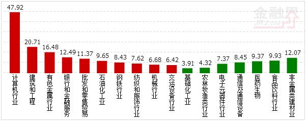 金融界网站资金流向显示:纳入统计的29个行业,总净流入量97.49亿,其中流入3363.52亿,流出3266.03亿,净流入量最大行业为计算机行业,净流出量最大的行业为非金属类建材业;主力净流入128.68亿,主力净流入最大的行业为计算机行业,净流出最大的为非金属类建材业。 今日大盘指数维持震荡上行,同时创业板实现探底拉升。从行业板块来看,保险、煤炭石油、钢铁、商业连锁、有色金属、计算机、工程建筑、外贸以及券商等概念涨幅居前;而酿酒食品、电力、建材、交通工具等行业滞涨。从概念板块来看,S板、保险、煤炭石油、PPP概念、中石化系、钢铁、次新股、稀缺资源、丝绸之路、海洋经济等概念涨幅居前;而西藏、人脸识别、白酒等概念跌幅居前。 从资金流方面来看,计算机行业资金净流入47.95亿,建筑工程行业资金净流入20.71亿,有色金属行业资金净流入16.48亿,金融股资金净流入12.49亿,批发零售资金净流入11.37亿,石油化工行业资金净流入9.65亿;而建材行业资金净流出12.07亿,食品饮料行业资金净流出9.93亿,医药生物(爱基,净值,资讯)行业资金净流出9.37亿。