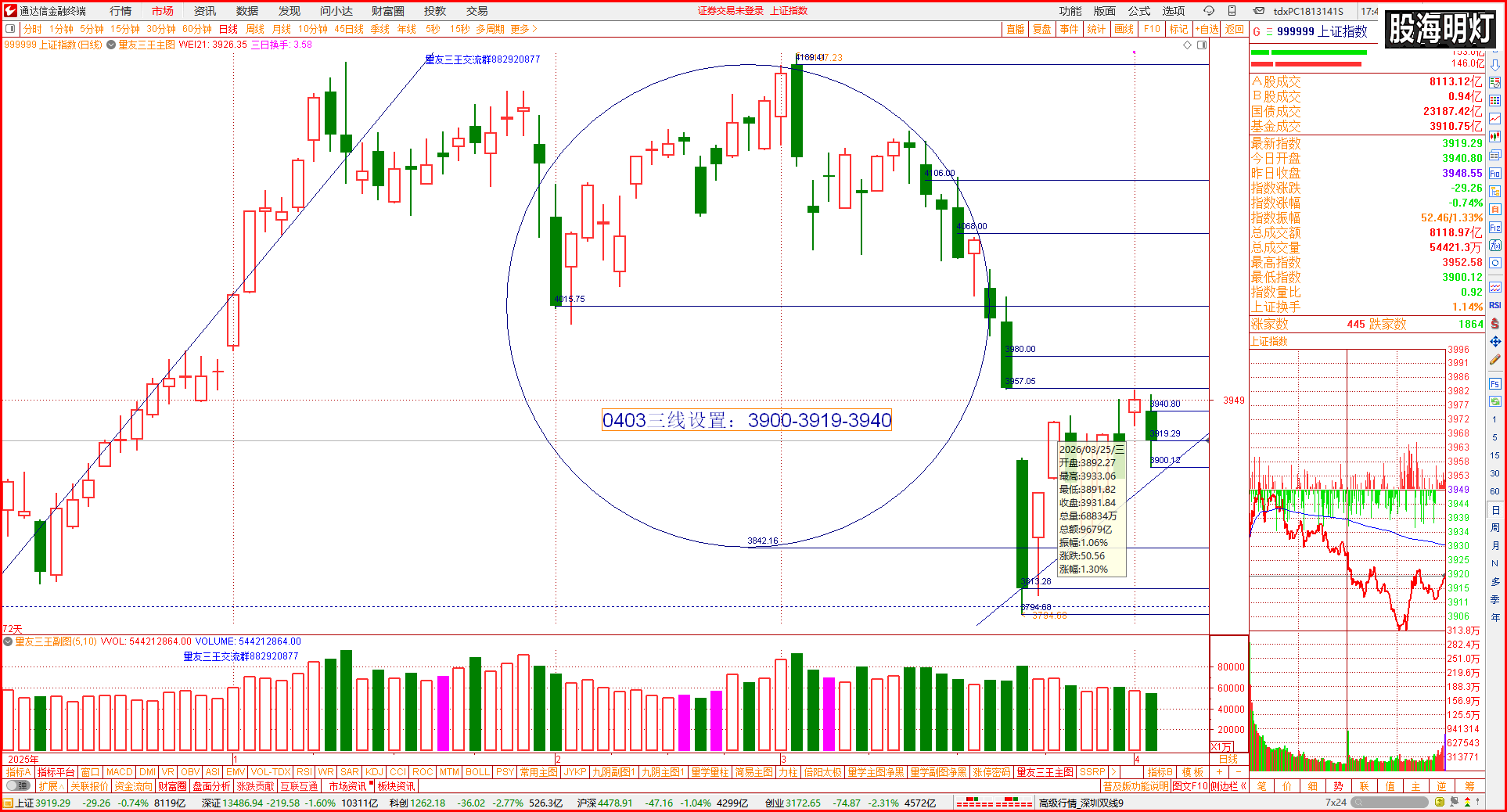 盘前预报,传经送宝;十年靓号,好评如潮。 量学铁律: 预判是尺,收盘是针;针尖对麦芒,压力变支撑;下跌看民生,反弹看科技。今日科技重灾。 一、开盘定势看大盘 昨日(0401)预判今日三线均衡,应该看今日开盘定势半小时的情况来作出决策。 今日(040 [详细内容]