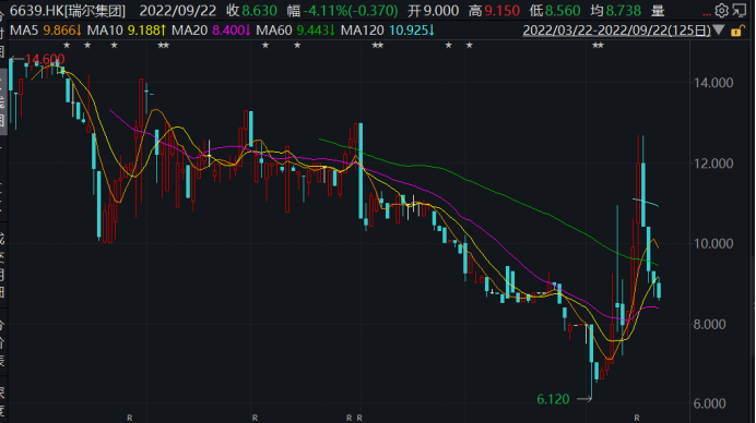 港股上市的瑞尔集团最近几个月股价走势也比较低迷。