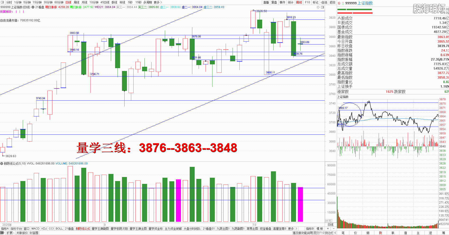 一、 昨日研判:稳健者可在本波下跌到位出现有效极阴次阳之后再次大胆模拟学习,原则上模拟学习量学不见有效次阳不动心知识点即可,王子教授多次讲解,牛市特色就是:上也牛,下也牛,百点阴阳,轮着抖!每一次 的假跌回踩都是倒车接人的机会,只要看懂了真跌假跌,我们就能够在出现有效次阳的时候大胆介入享受下一次拉升的乐趣。周一将继续考验最近高量大阴实底3831点支撑,此线站稳可能出现盘中反弹,一旦此线继续跌破需防深幅下探3800点,周一量学【上日三线】:3848--3839--3831(3800)。早盘竞价高开,但是结合周五阴柱较大,必须量波正三维有效站上3883点左峰上方才安全,没有达标之前稳健者应该继续结合手中持有案例模拟训练量学替领防控知识点为主,开盘后 量波急拉明显不健康,其后虽有冲高但未能有效站上3883点,其后在风向标券券为首的三驾马车跳水影响下跟随跳水挖坑,盘中没有任何可以安全模拟训练的机会,稳健者必须严格执行量学不见有效次阳不动心知识点模拟学习,最终收盘量学假阴真阳十字星,对应量柱明显缩量,假阴真阳是量学中比较怪异的涨停基因,它上涨途中助涨,下跌途中助跌,所以假阴真阳的当天必须当阴看,次日出现有效真阳盖假阴后才能模拟学习量学“假阴真阳,牵牛待涨”。同时今天假阴未能站上周五阴半上方,结合量学箴言:不过鬼门关,谨防往下窜!所以明日必须出现有效次阳站上3876点阴半上方,强势继续站上3883点凹间峰上方,才是符合量学标准的次阳,反之,一旦不能站上今日假阴实顶上方的盘中反弹,还需谨防再次掉头下行。明日量学【上日三线】:3876--3863--3848.