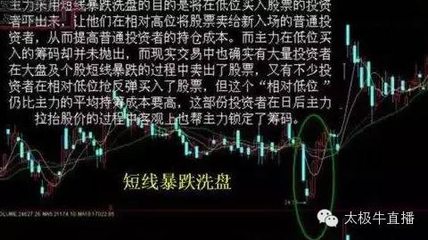 主力采用短线暴跌洗盘的目的,是将在低位买入股票的投资者吓出来,让他们在相对高位将股票卖给新入场的投资者,从而提高普通投资者的持仓成本。而主力在低位买入的筹码却并未抛出,而实现交易中也确实有大量投资者在大盘及个股短线暴跌的过程中卖出了股票,又有不少投资者在相对低位抢反弹买入了股票,但这个“相对低位”仍比主力的平均持筹成本要高,这部分投资者在日后主力拉抬股价的过程中,客观上也帮主力锁定了筹码。
