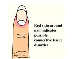 指甲周围的皮肤为红色表示结缔组织紊乱