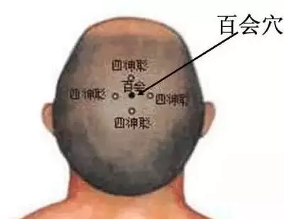1.百会穴——头顶至后脑的0.618处是百会穴,在头顶正中心。