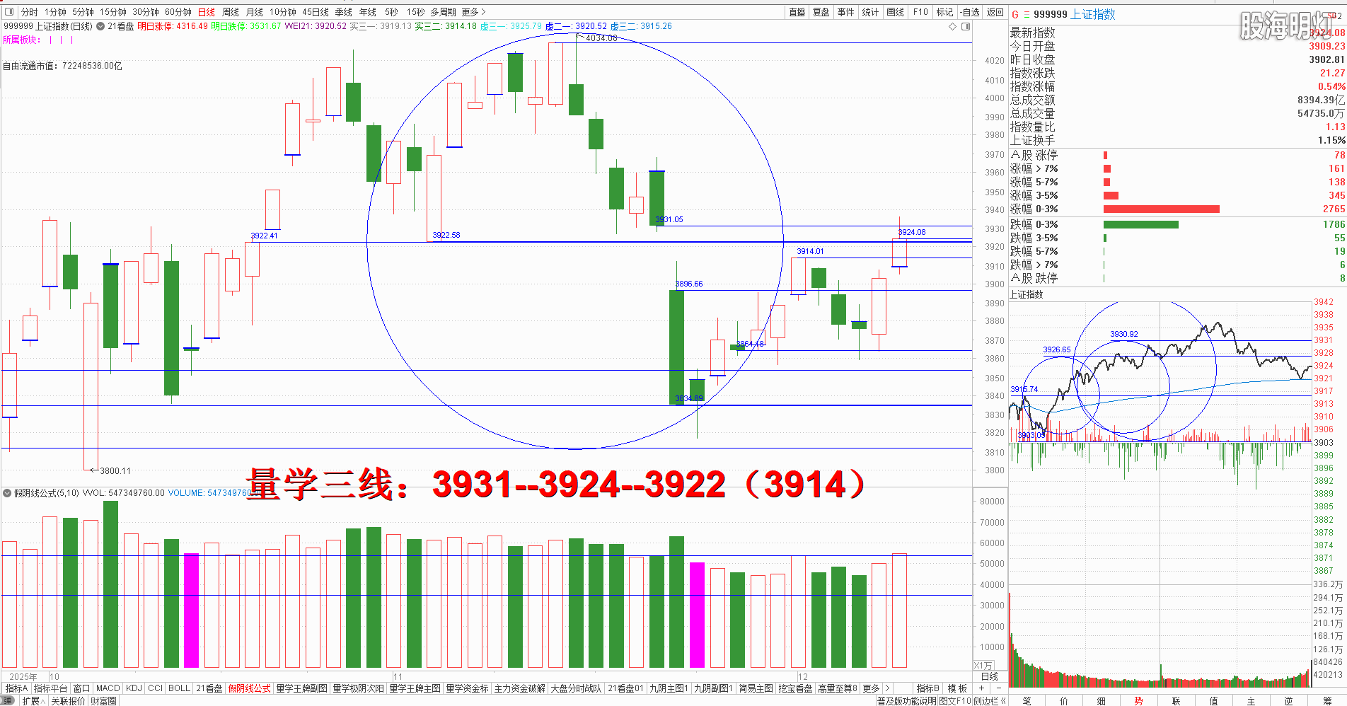 友情提示:股市有风险,入市需谨慎!本文仅代表作者个人观点,我们采用清华大学出版社、经济日报出版社和四川人民出版社《量学经典教材》,旨在记录和验证量学盘前预报,总结提升量学经验,积累历史档案,不为操盘指导,据此实盘者盈亏自负,均与作者无关!好的谷票管一阵子,好的技术管一辈子,学习改变人生,学习改变未来!我们不但教给大家量学技术,更为大家提供适合自己的量学方案,让我们快来一起学习吧! 一、 昨日研判:周一还有再次回踩确认3896点阴康桥站稳不破的需要,只要康桥站稳并有效站稳预定上线3908点,即可继续模拟训练量学替领精练知识点,即便不能站上3908点上方,只要继续站稳3896点不破并对应缩量百日低量,达标仍可继续模拟训练“不理指数,精练案例”知识点,一旦以今天次阳作为基柱,继续构建量性转强的合力王牌柱,后势依然看涨,反之一旦再次跌3896点康桥,今日模拟训练次阳者,还需结合量学快进快出后再观察后势。量学【上日三线】:3908--3902--3896.早盘竞价高开强势信号,那么结合开盘量波正三维有效站稳最近左峰3914点上方,即可继续模拟训练量学替领精练知识点,开盘后量波回踩今日跳空缺口不破后站稳3914点上方开始震荡上攻,下午上攻至3931点缺口不能有效站稳在风向标券券跳水的影响下震荡回落,收盘中阳单枪对应量柱微增量,收盘站稳3922点黄金精准谷底线上方2个点,明日将继续考验3922点支撑,此线站稳不破将继续上行,反之跌破3922点将有回踩3914点凹间峰需求,稳健者可待站稳3914点不破再次阳盖阴时继续大胆模拟训练即可,反之静候再次出现量学极阴次阳知识点的机会。明日量学【上日三线】:3931--3924--3922(3914)。