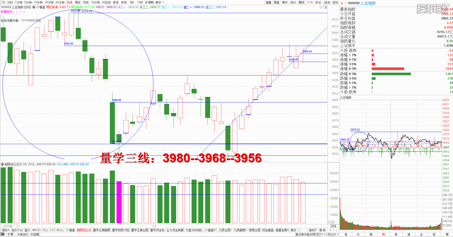 二、创业板研判:今天收盘中阴跌破昨日阳实底,对应量柱平量昨日阳柱,出现量学九阴真经信号,下周一常态应该继续看跌,量学三段以上高手可继续模拟训练“不理指数,精练个谷”;涨停趋势依然是量学“极阴次阳回马枪战法+凹里淘金战法”为主,今日收盘6只20CM,模拟训练难度非常考验量学功底;后势涨停趋势可继续模拟学习量学凹底淘金知识点+极阴次阳回马枪+康桥战法模拟训练,要特别训练出现首跌缩量,精准回踩重要量线出现有效次阳后出现量学刹车王牌柱知识点后,看不懂量学建构,不明白量学量波技术原理,切忌盘中盲目追涨杀跌,看不懂就不要强求。模拟训练一定要训练在自己认知之内的案例,看不懂的案例还需做到:宁错过,不做错。一般人最好耐心模拟学习量学不见次阳不动心知识点。 明日量学【创业板三线】:3207--3203--3196