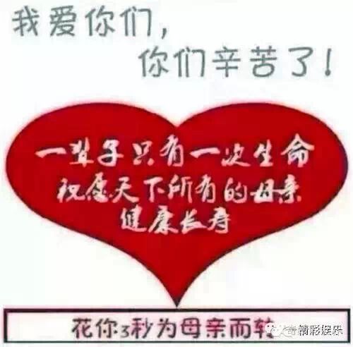一辈子只有一次生命,祝愿天下所有的母亲,健康长寿!