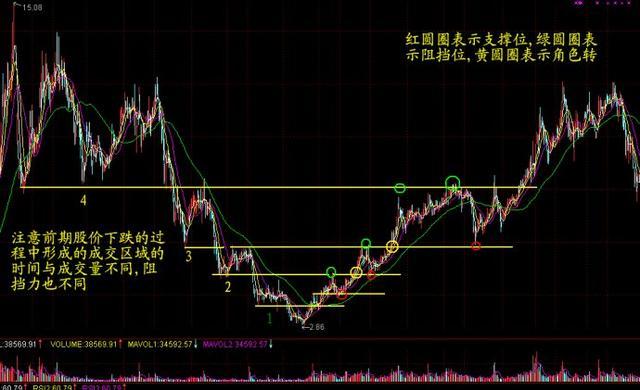 它的原理是交易者心理变化引起的,在这里我就不说了。从图中知道支撑位与阻挡位可以互换的。 支撑位与阻挡位一般市场指导意义是:(这里主要是结合历史重要底部研究) 1、 与前面股价下跌过程中形成的价格停留区域的时间的长短,形成的时间越长,压力就越大,反之亦然。